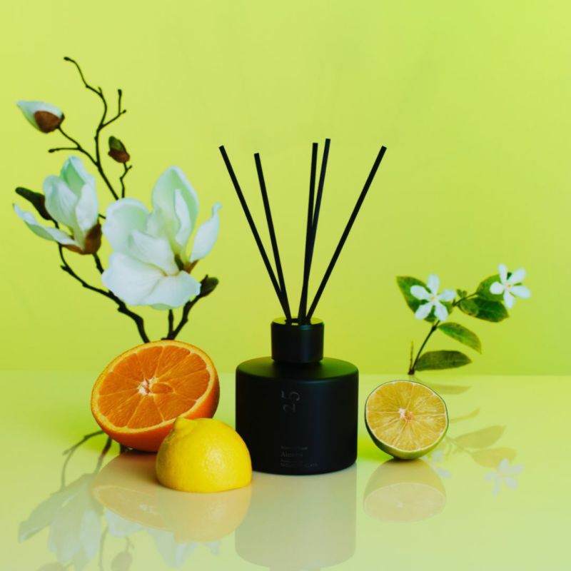 箱から緩衝材を外し、容器を取り出して、穴の開いたキャップを外し、中栓キャップをゆっくり抜いてください。リードを取り出し、穴の開いたキャップを容器口に設置し、 5本容器口に挿し込みます。容器が転倒しない平らな所で人あるいはペットの移動導線を避けた場所に置いてください。内容液は凡そ40日~60日程度で蒸散しますが、ご使用される環境、リードの本数によって持続期間は異なります。ご使用中にリードが変色する場合がありますが、香りには問題ありません。ご使用環境により、液体内部に澱、沈殿が発生する場合がありますが、主に天然香料成分由来のものですので、品質に問題はありません。ご使用環境によって溶液が変色する場合があります。高温の場所、日光のあたる窓際でのご使用は避けてください。