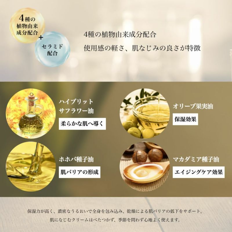 うるおいのカギとなる「セラミド」を贅沢に配合。保湿力が高く、濃密なうるおいで全身を包み込み、